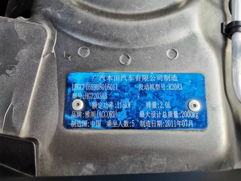[已售]海豐二手車2011年12月本田雅閣6.Xx萬元.,2011款自動(dòng)2.0L EX Navi。鐵灰色,有天窗。多功能方向盤,定速巡航,大彩色中控屏,倒車影像,倒車?yán)走_(dá)。真皮座椅,雙電動(dòng)座椅,皮質(zhì)靚靚。后排座空調(diào)出口。五檔自動(dòng),歐4排放標(biāo)準(zhǔn)。11萬公里。新車落地25萬元。豪華大氣上檔次,動(dòng)力強(qiáng)勁。商務(wù)代步棒棒噠。海豐看車。 LLT: LHGCP1689B8016011
